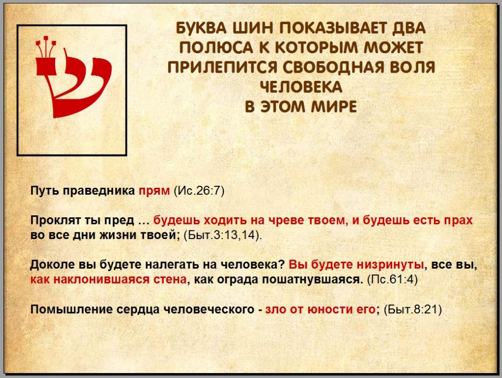 [21] О этой двойственности смыслового значения буквы ШИН будет идти речь ниже. А также это отчасти разбиралось в комментарии на введение в 118 псалом «Еврейские буквы о Христе».