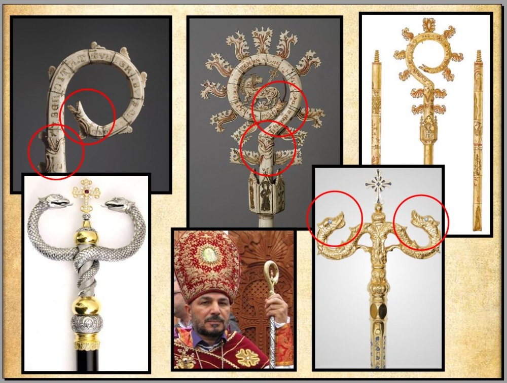 В этой истории также видится противостояние Божьего змея змеям нечистоты. Кстати сказать, о том что в католической и армянской церкви присутствует образ двух змеев. Один змей проглатывает другого змея. Этот образ применяется в жезлах епископов и настоятелей монастырей. Форма навершия жезла по форме очень схожа с змеиным жезлом египетских фараонов. Но в отличии от них образ христианского «глотающего змея», показывает победу Змея Святости над Змеем Нечистоты.