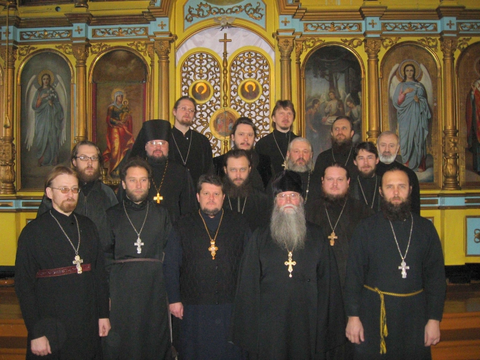на фото он в центре в жилетке и синем подряснике