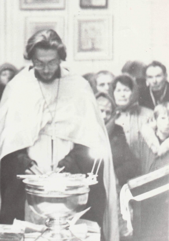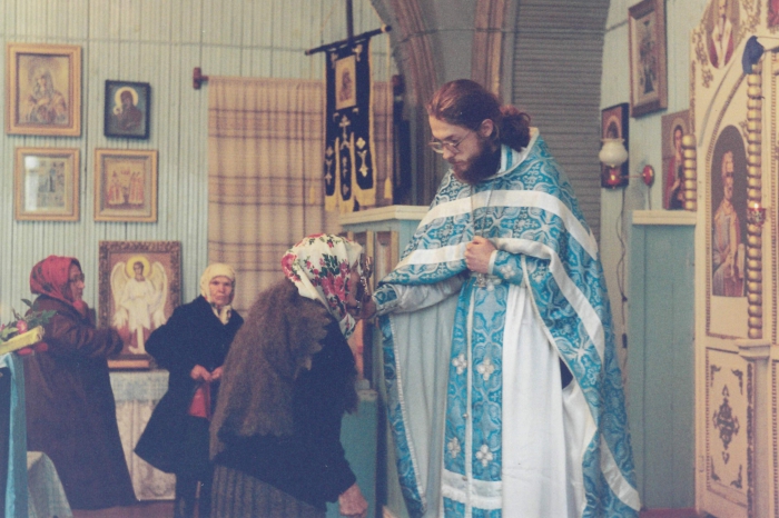 Дмитрия Ивановича я увидел в первый день своего прибытия на приход. Он, и Николай Федотович Колчин мастерили рамы для Знаменского прихода чтобы закрыть пустые оконные проемы до холодов. Это был конец сентября. Он был столяром и плотником и брался за любую работу, хотя на его руках небыло нескольких пальцев. Он и пилил и строгал и поднимался для окраски сводов на высоту как молодой мужчина. Болезнь не дала ему быть на службах до конца своей жизни. Он причащался на дому. Когда он преставился его жена Анна прожила не долго, тоже болев и не выходя из дома. Они умерли во Христе быв Ему причастниками. У них небыло детей и свою избушку и землю они оставили приходу. После их кончины избушка была продана и на эти деньги был построена ограда вокруг храма. Упокой Господи Дмитрия и Анну, и простив им грехи, даруй Царствие Твое Небесное.